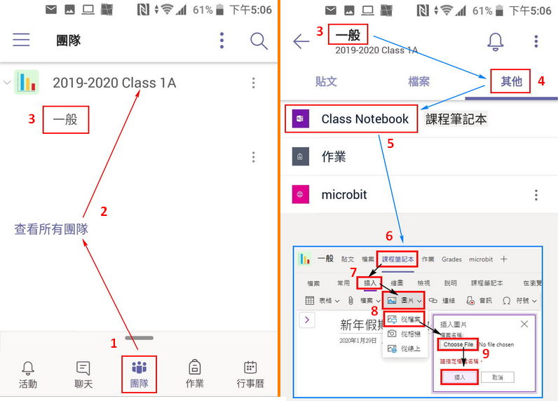 Microsoft Teams for school (intro) 使用簡介 2019 手機上載圖片至 class-Notebook(課程筆記本)