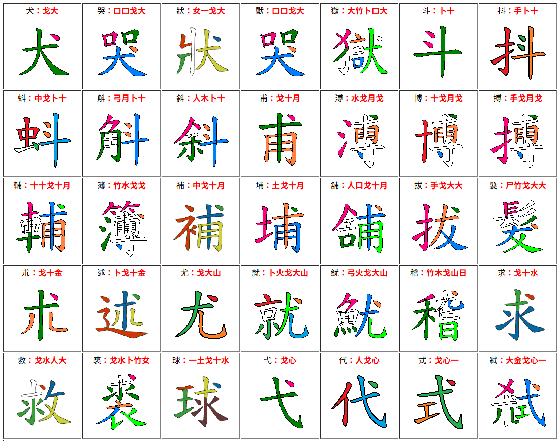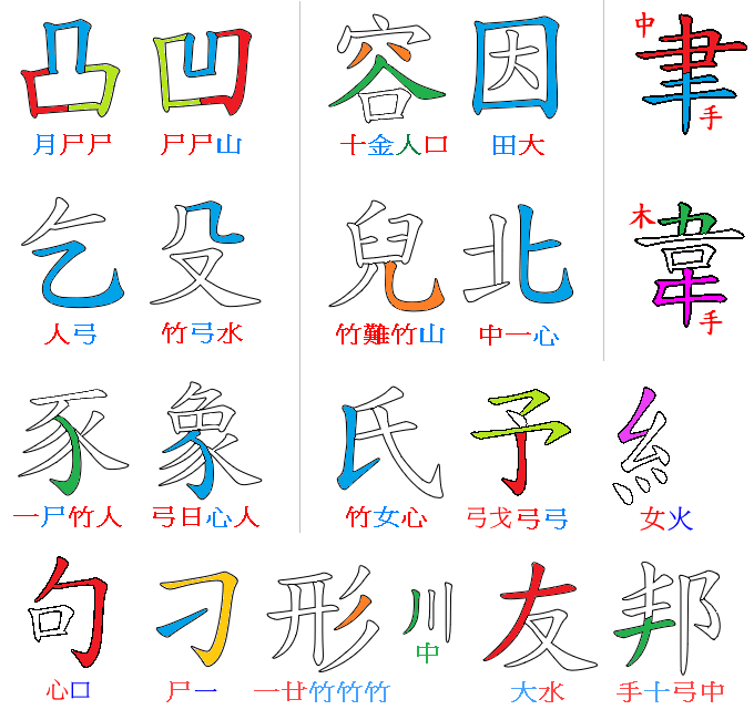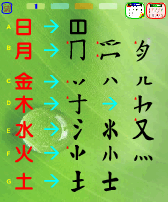日月金木水火土 竹戈十大中一弓 人心手口 尸廿山女田X卜 |