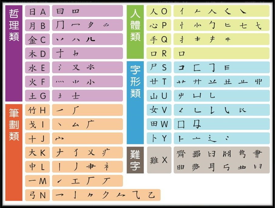 萬用字元: 象鼻義辦識靜 標點:z ctrl-, ctrl-alt- ┌────┬────┐ │ │ │ ├────┼────┤ │ │ │ └────┴────┘