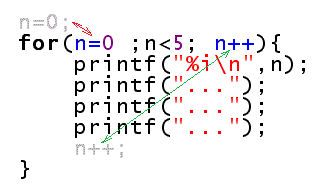 for (n=0; n<5; n++){