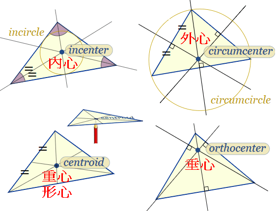 (1)內心 incenter (角平分線 angle bisector)